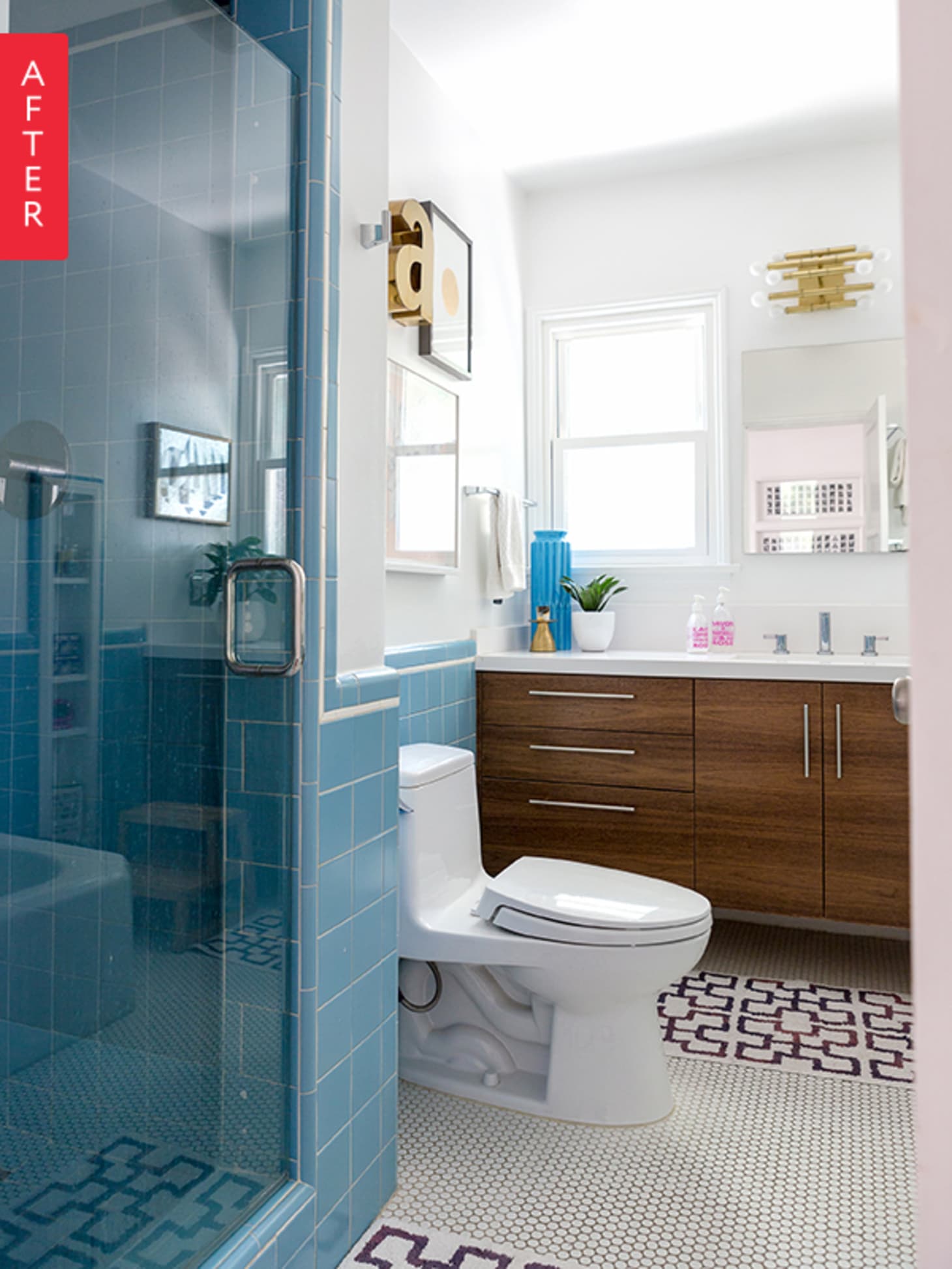See this green bathroom makeover before and after from media3.s-nbcnews.com Any thoughts on colors to complement or just be totally awesome with this blue tile? Discover ways to use bathroom floor tile, tile patterns, and bathroom wall tile in your home. Bathrooms remodel blue bathroom vanity room flooring tile bathroom blue tile floor flooring room tiles trendy bathroom kitchen flooring. The most common bathroom makeover material is cotton. Anyone been thinking about a bathroom makeover recently? Bathroom design bathroom decor herringbone tile bathroom inspiration beautiful bathrooms bathrooms remodel interior bathroom interior design bathroom makeover. We also taped off all the edges with blue painters tape. A beautiful bathroom tile design can transform a plain space into a standout sanctuary.