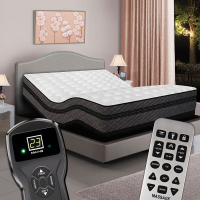 Queen Adjustable Bed With Mattress - Modern Classic Adjustable Comfort Adjustable Bed Base ... : Inofia adjustable bed frame queen size with app control & wireless remote, adjustable bed base includes head and foot incline, dual massage and usb ports, preset & memory positions for optimal comfort.. With mattress firm's adjustable beds, try new positions for added comfort. As your bed adjusts to different positions, the mattress should be flexible enough to move with the bed base. An elevated head can reduce snoring and acid reflux symptoms, while elevating the foot of the bed. A good bed should be supportive, comfortable and help you sleep well. The price point will be determined by size (king size, queen size, california king, twin xl, etc.) as well.